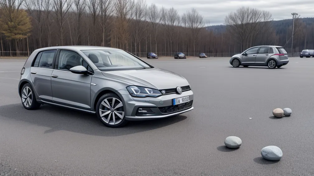 Один из брошенных камней попал в припаркованный на парковке супермаркета серый автомобиль Volkswagen Golf, причинив ему повреждения.